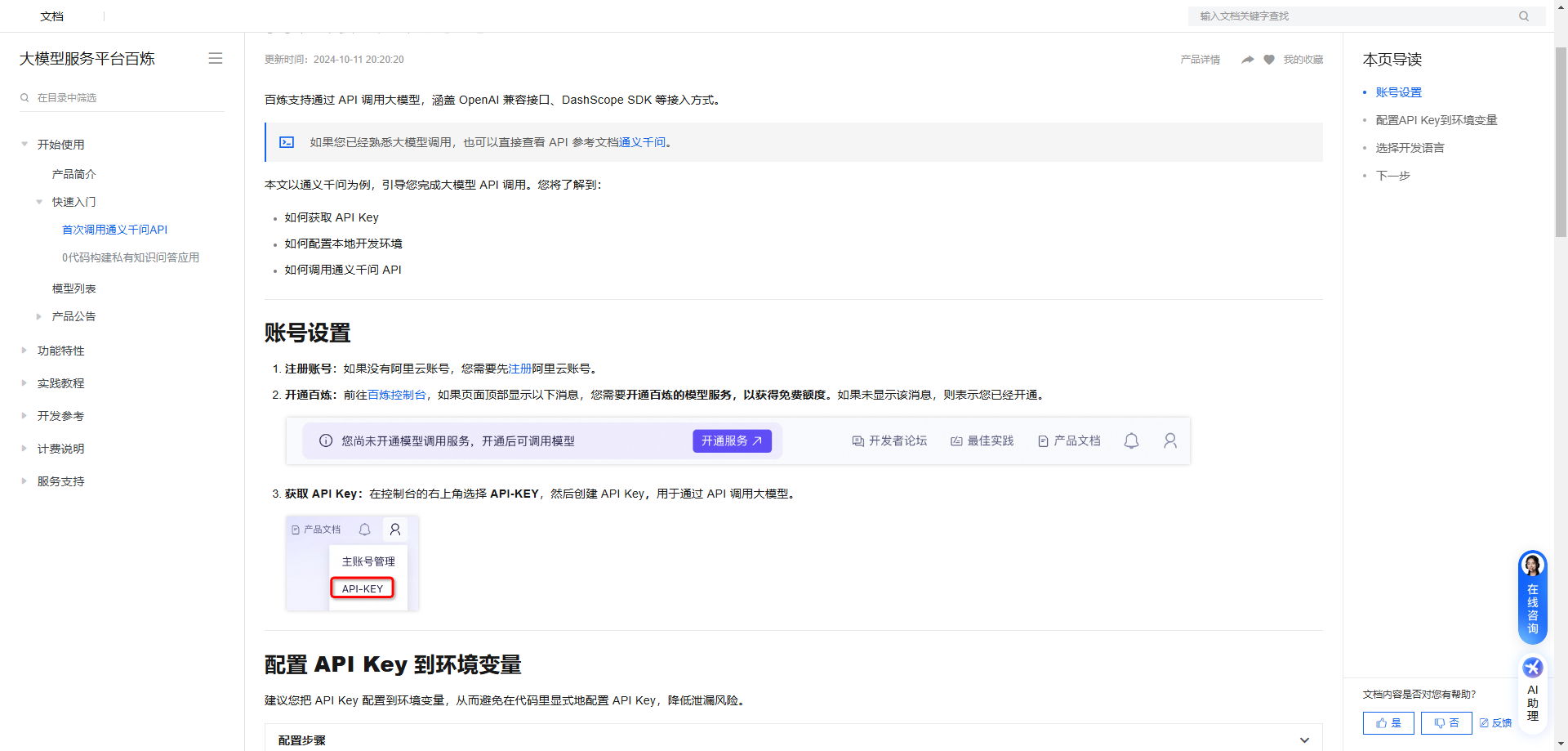 根据文档获取 API KEY,并配置环境变量。